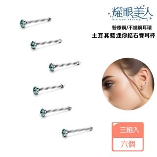 土耳其藍迷你鋯石鑽/銀色養耳棒鈦閃耀/鈦鋼耳環六入(過爐款/女王節/造型美容美感品味),以鈦鋼、鋯石鑽、銀色打造亮眼質感,適合日常穿搭與聚會點綴。