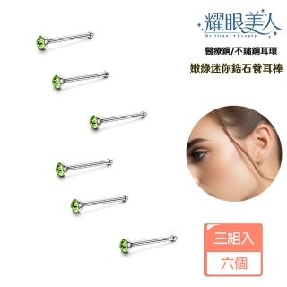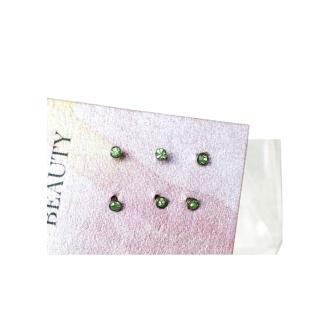 【耀眼美人】嫩綠迷你鋯石鑽/養耳棒鈦閃耀/鈦鋼耳環六入(過爐款/女王節/造型美容美感品味)