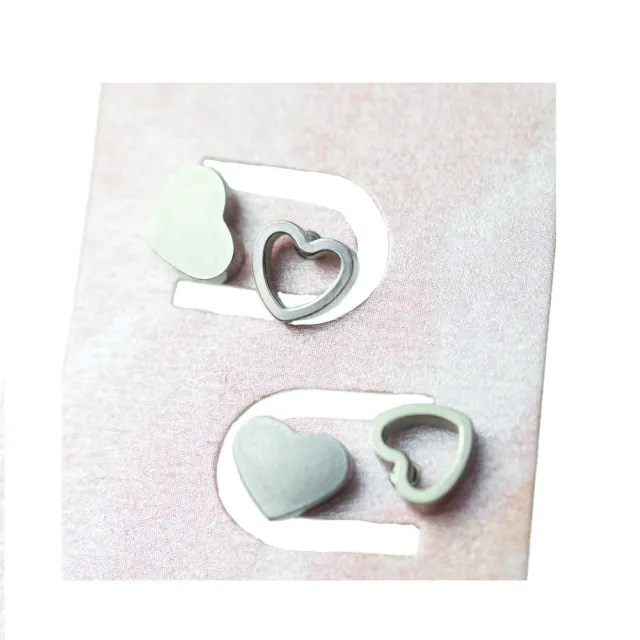 心心相印後鋯石鑽鈦閃耀不銹鋼耳環兩組入(女王節/睡覺免摘/造型美容美感品味)