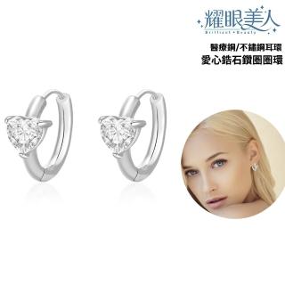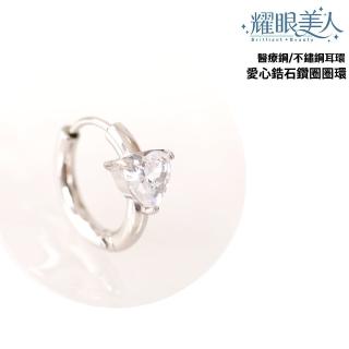 【耀眼美人】愛心鋯石鑽圓圈環鈦閃耀/鈦剛耳環一對入(過爐款/耳環/造型美容美感品味/女王節)