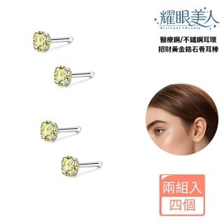 招財黃金鋯石養耳棒鈦閃耀/鈦鋼耳環(過爐款/女王節/造型美容美感品味)