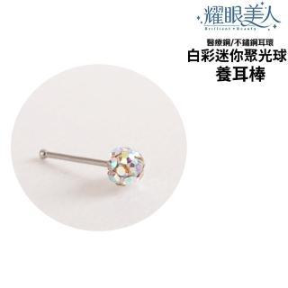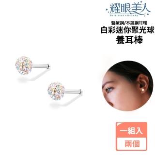 白彩迷你聚光球鋯石鑽養耳棒鈦閃耀/鈦鋼耳環兩入(過爐款/女王節/造型美容美感品味)