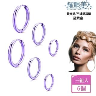 簡潔淺紫金圓圈環鈦閃耀/鈦剛耳環三對入(過爐款/耳環/造型美容美感品味/女王節),以日常百搭打造亮眼質感,適合日常穿搭與聚會點綴。