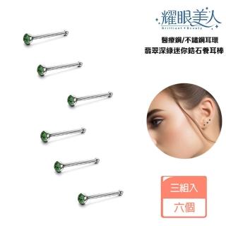 翡翠深綠迷你鋯石鑽/養耳棒鈦閃耀/鈦鋼耳環六入(過爐款/女王節/造型美容美感品味),以鈦鋼、鋯石鑽打造亮眼質感,適合日常穿搭與聚會點綴。
