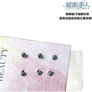 【耀眼美人】翡翠深綠迷你鋯石鑽/養耳棒鈦閃耀/鈦鋼耳環六入(過爐款/女王節/造型美容美感品味)