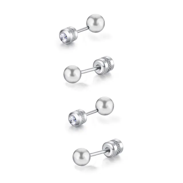 耀眼銀色小珠鈦閃耀/鈦鋼耳環後鋯石鎖式耳環(女王節/造型/小珠轉式耳環/睡覺可戴)