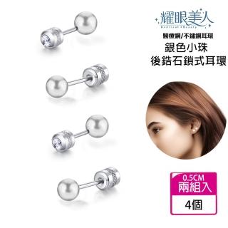 耀眼銀色小珠鈦閃耀/鈦鋼耳環後鋯石鎖式耳環(女王節/造型/小珠轉式耳環/睡覺可戴),以鈦鋼、銀色打造亮眼質感,適合日常穿搭與聚會點綴。