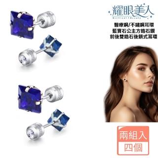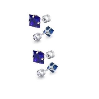 藍寶石公主方鋯石鑽鈦閃耀不鏽鋼耳環兩組入(女王節/造型/過爐款/美容美感品味),以不鏽鋼、鋯石鑽、藍寶石打造亮眼質感,適合日常穿搭與聚會點綴。