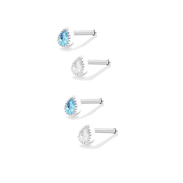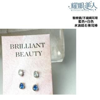藍色與白色水滴鋯石鑽養耳棒鈦閃耀/鈦鋼耳環四入(過爐款/女王節/造型美容美感品味)