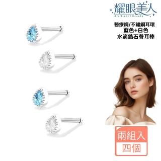 藍色與白色水滴鋯石鑽養耳棒鈦閃耀/鈦鋼耳環四入(過爐款/女王節/造型美容美感品味),以鈦鋼、鋯石鑽打造亮眼質感,適合日常穿搭與聚會點綴。