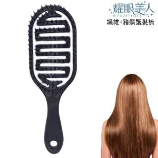 豬鬃纖維弧度護髮梳黑色(特級梳/造型梳頭美容)