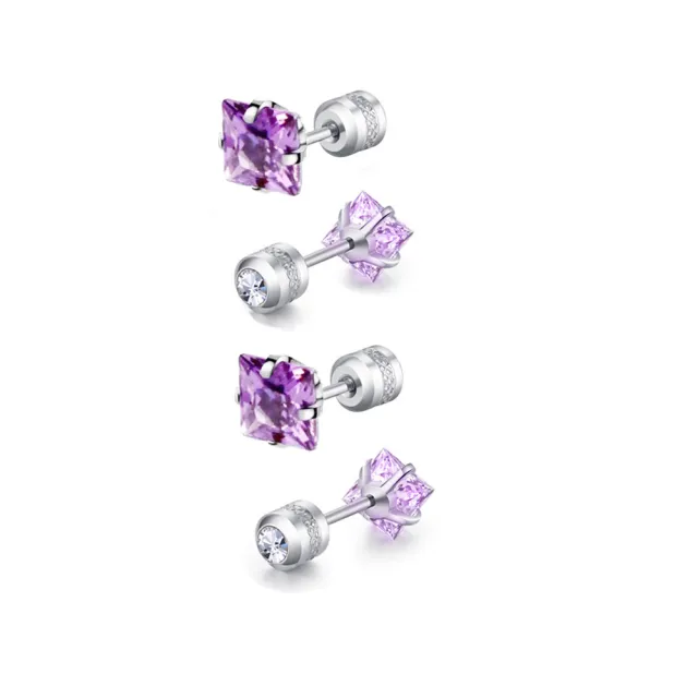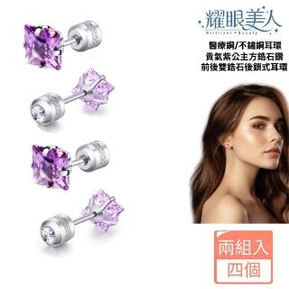 貴氣紫公主方鋯石鑽鈦閃耀不鏽鋼耳環兩組入(女王節/造型/過爐款/美容美感品味),以不鏽鋼、鋯石鑽打造亮眼質感,適合日常穿搭與聚會點綴。