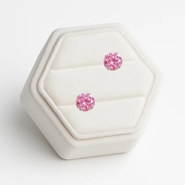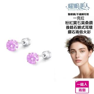 超閃耀一克拉粉紅寶石莫桑鑽耳環鈦閃耀/鈦鋼耳環後鎖式(八心八箭/莫桑鑽耳環/女王節)