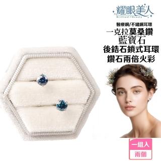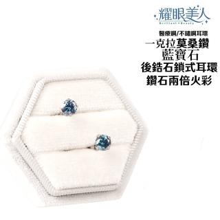 超閃耀一克拉藍寶石莫桑鑽耳環鈦閃耀/鈦鋼耳環後鎖式(過爐款/八心八箭/莫桑鑽耳環/女王節)