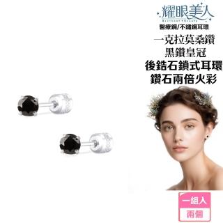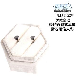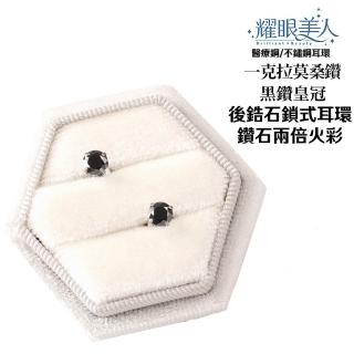 超閃耀一克拉黑鑽皇冠莫桑鑽耳環鈦閃耀/鈦鋼耳環後鎖式(八心八箭/莫桑黑鑽耳環/女王節)