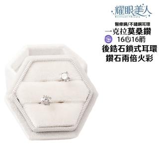 超閃耀一克拉16心16箭莫桑鑽耳環鈦閃耀/鈦鋼耳環後鎖式(16心16箭/莫桑鑽耳環/女王節)
