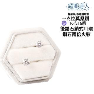 超閃耀一克拉16心16箭莫桑鑽耳環鈦閃耀/鈦鋼耳環後鎖式(16心16箭/莫桑鑽耳環/女王節),以鈦鋼打造亮眼質感,適合日常穿搭與聚會點綴。