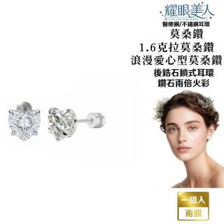超閃耀一點六克拉浪漫愛心型鑽莫桑鑽耳環鈦閃耀/鈦鋼耳環後鎖式(D色女王節/莫桑鑽耳環/年貨節)