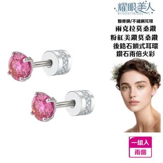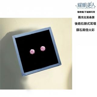 超閃耀兩克拉粉紅美鑽莫桑鑽耳環鈦閃耀/鈦鋼耳環後鎖式(八心八箭/莫桑鑽耳環/女王節)
