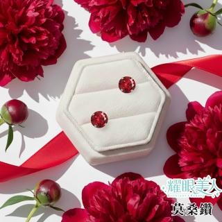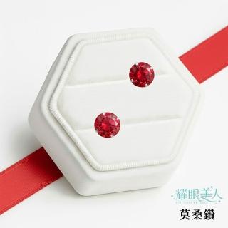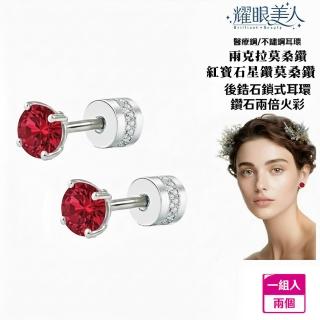 超閃耀兩克拉紅寶石星鑽莫桑鑽耳環鈦閃耀/鈦鋼耳環後鎖式(八心八箭/莫桑鑽耳環/女王節)