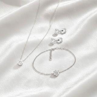 超閃耀兩克拉莫桑鑽耳環後鎖美星鑽鎖骨項鍊手鍊套組/不鏽鋼(莫桑鑽禮物/女王節/顯白氣質)