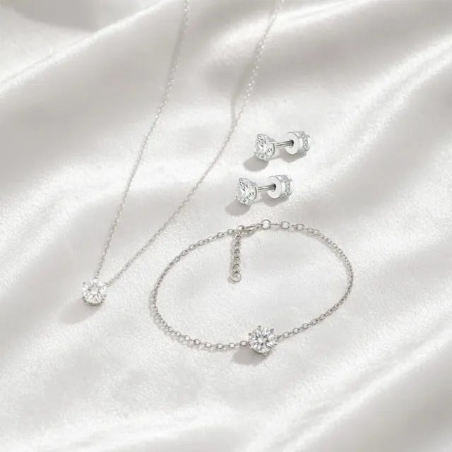 搶先評價 “【耀眼美人】超閃耀兩克拉莫桑鑽耳環後鎖美星鑽鎖骨項鍊手鍊套組/不鏽鋼(莫桑鑽禮物/女王節/顯白氣質)”