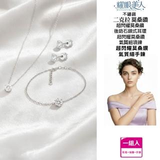 超閃耀兩克拉莫桑鑽耳環後鎖美星鑽鎖骨項鍊手鍊套組/不鏽鋼(莫桑鑽禮物/女王節/顯白氣質),以不鏽鋼打造亮眼質感,適合日常穿搭與聚會點綴。