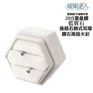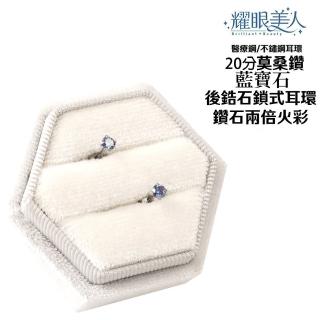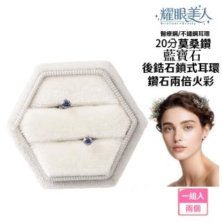 【耀眼美人】超閃耀20分藍寶石莫桑鑽耳環鈦閃耀/鈦鋼耳環後鎖式(過爐款/八心八箭/莫桑鑽耳環/女王節)