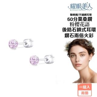 超閃耀60分粉櫻花語莫桑鑽耳環鈦閃耀/鈦鋼耳環後鎖式(過爐款/八心八箭/莫桑鑽耳環/女王節)