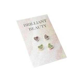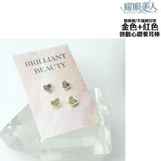 金色+紅色微觀心鑽鋯石養耳棒鈦閃耀/鈦鋼耳環四入(過爐款/女王節/造型美容美感品味)