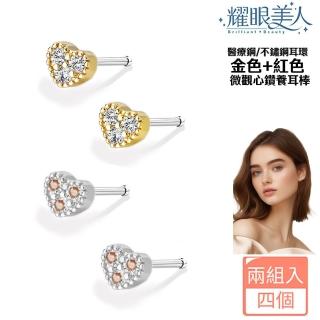 金色+紅色微觀心鑽鋯石養耳棒鈦閃耀/鈦鋼耳環四入(過爐款/女王節/造型美容美感品味),以鈦鋼打造亮眼質感,適合日常穿搭與聚會點綴。