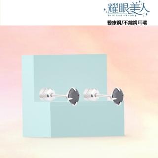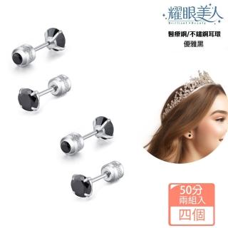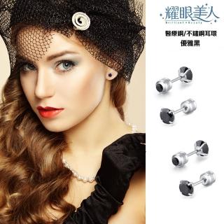 閃耀優雅黑雙鋯石鑽鈦閃耀不銹鋼50分耳環兩組入(女王節/睡覺免摘/造型美容美感品味)