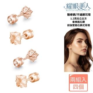 閃耀公主方玫瑰金香檳鋯石鑽1.2克拉鈦閃耀不鏽鋼耳環(女王節/造型/過爐款/美容美感品味),以不鏽鋼、鋯石鑽、玫瑰金打造亮眼質感,適合日常穿搭與聚會點綴。