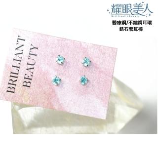 閃耀水藍鋯石養耳棒鈦閃耀/鈦鋼耳環(過爐款/女王節/造型美容美感品味)