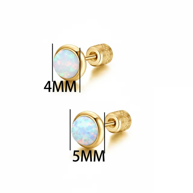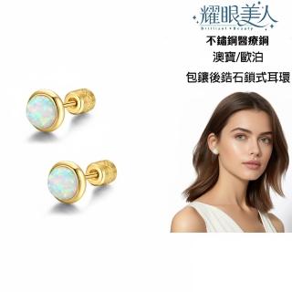 閃耀澳寶金色鈦閃耀/鈦鋼耳環後鋯石鎖式耳環(女王節/造型/歐泊蛋白石/睡覺可戴)