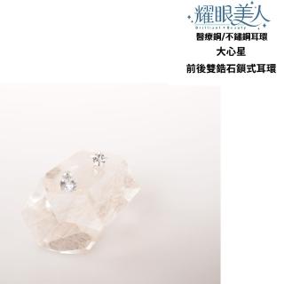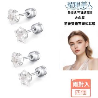 閃耀銀色大心星雙鋯石鑽鈦閃耀不銹鋼耳環兩組入(女王節/造型美容美感品味/過爐款)