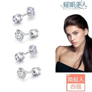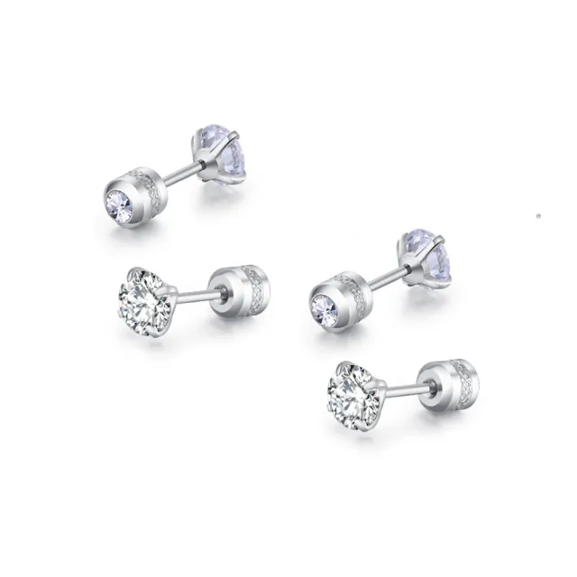 閃耀銀色雙鋯石鑽鈦閃耀不銹鋼耳環兩組入(女王節/造型美容美感品味)