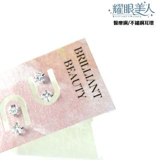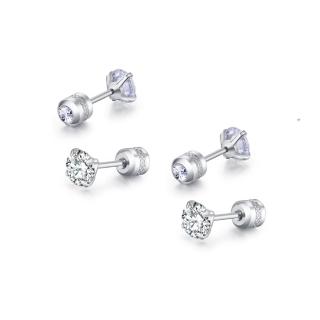 閃耀銀色雙鋯石鑽鈦閃耀不鏽鋼耳環兩組入(女王節/造型美容美感品味)