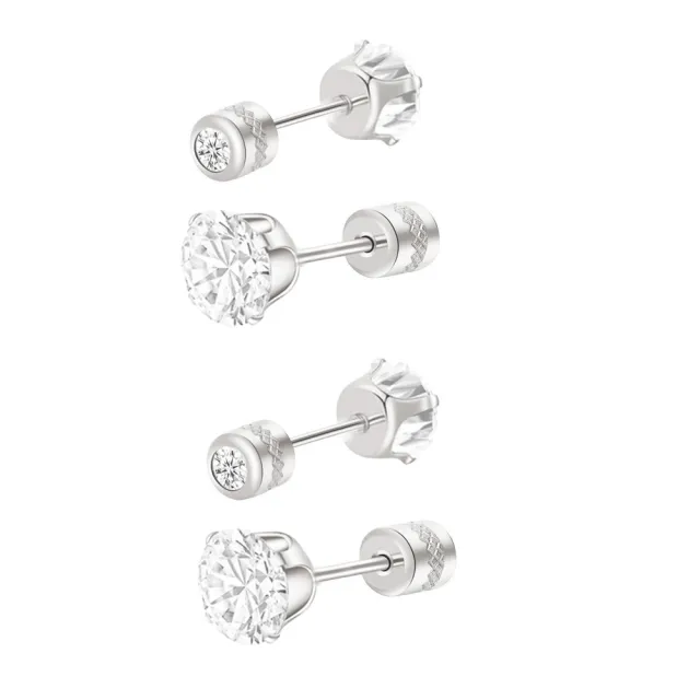 閃耀銀色2克拉雙鋯石鑽長杆鈦閃耀不銹鋼耳環兩組入(女王節/造型美容美感品味/厚耳垂用/)