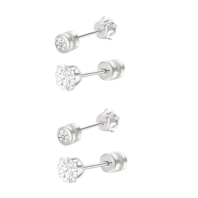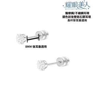 閃耀銀色80分雙鋯石鑽長杆鈦閃耀不銹鋼耳環兩組入(女王節/造型美容美感品味/厚耳垂用/)