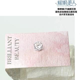 【耀眼美人】閃耀銀色80分雙鋯石鑽長杆鈦閃耀不銹鋼耳環兩組入(女王節/造型美容美感品味/厚耳垂用/)