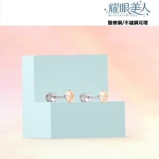 【耀眼美人】閃耀香檳金雙鋯石鑽鈦閃耀不銹鋼耳環兩組入(女王節/睡覺免摘/造型美容美感品味)