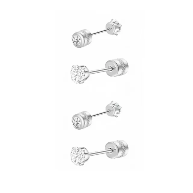 閃耀10分銀色雙鋯石鑽長杆鈦閃耀不銹鋼耳環兩組入(女王節/造型美容美感品味/厚耳垂用/),以不銹鋼、鋯石鑽、長杆、厚耳垂用、雙鋯石鑽打造亮眼質感,適合日常穿搭與聚會點綴。
