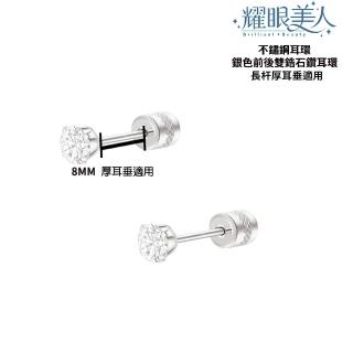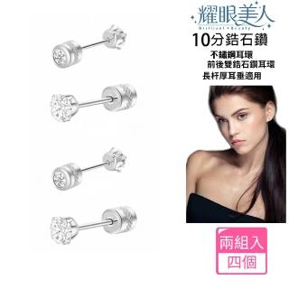 【耀眼美人】閃耀10分銀色雙鋯石鑽長杆鈦閃耀不銹鋼耳環兩組入(女王節/造型美容美感品味/厚耳垂用/)