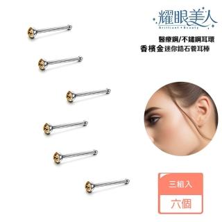 香檳金迷你鋯石鑽/銀色養耳棒鈦閃耀/鈦鋼耳環六入(過爐款/女王節/造型美容美感品味)