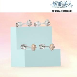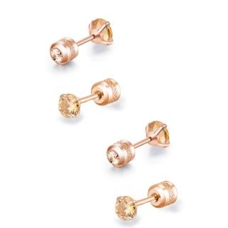 香檳金雙鋯石鑽鈦閃耀不銹鋼耳環兩組入(女王節/睡覺免摘/造型美容美感品味)