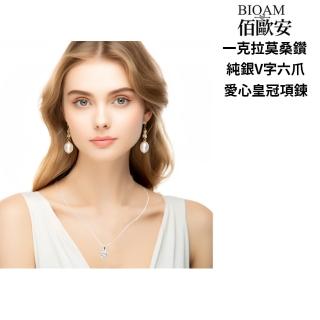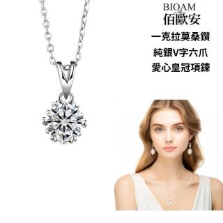【BIOAM 佰歐安】一克拉純銀莫桑鑽V字六爪愛心皇冠項鍊(好運節/過爐款/莫桑石耳環/八心八箭)