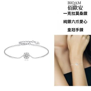 一克拉莫桑鑽手鍊/手環純銀六爪愛心皇冠(女王節/過爐款/莫桑鑽手鍊/手環/不過敏)