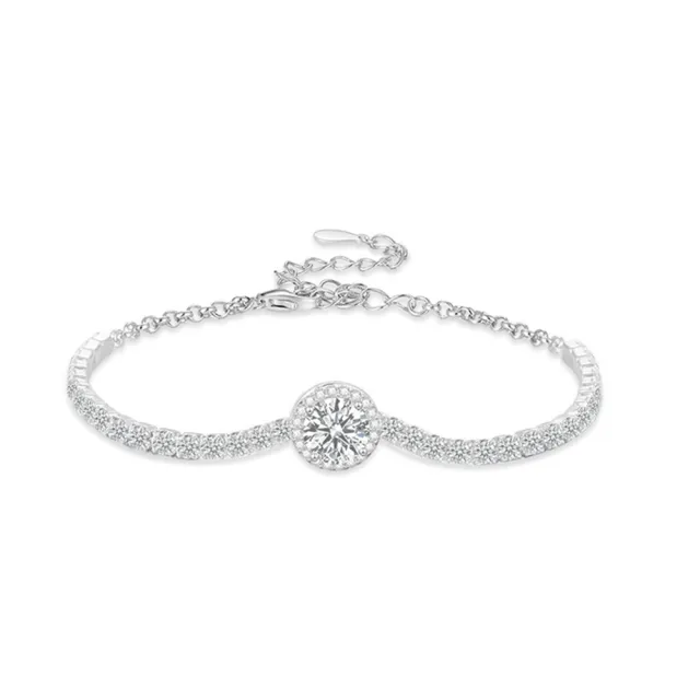 一克拉莫桑鑽手鍊/滿鑽光環銀河純銀鍍18K白金(女王節/過爐款/莫桑鑽手鍊/手環/不過敏)