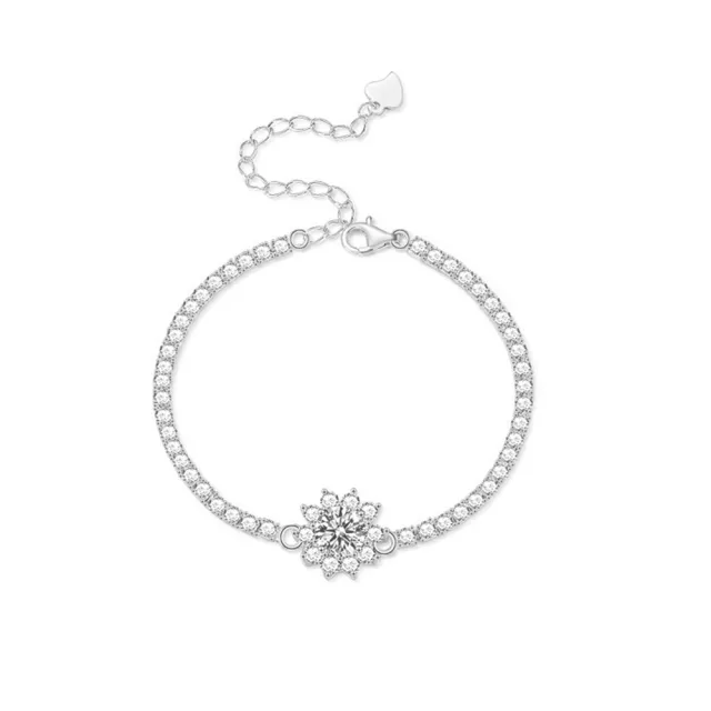 一克拉莫桑鑽手鍊/璀璨太陽花銀河純銀18K白金(女王節/過爐款/莫桑鑽手鍊/手環/不過敏)